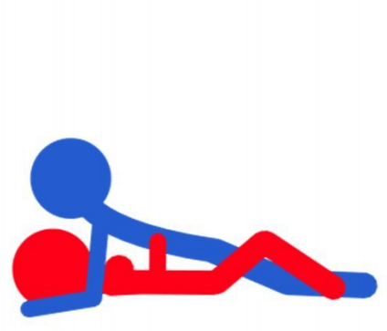 注解:这个动作最关键的要点就是在于“压”这个字上,女方在这个动作中除了充分配合外,只要适当地将腿缠绕到男方的腿上即可。