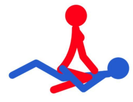 注解:女方跪骑在男方身上,男人双手扶住女人的腰,女人前后晃动(不要上下),产生快感,此动作可以让女方臀部的肌肉充分用力控制阴道的收缩,可以在性生活当中提供更多的快感。