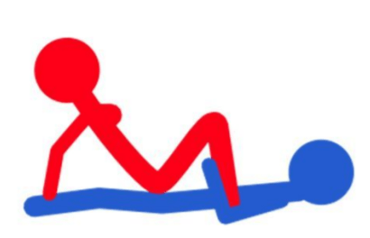 注解:她应该把他的阴茎放进去,来回摩擦。他能举起她的臀部,这种方式可以帮助她上下移动。优势在于,她做大部分的工作。