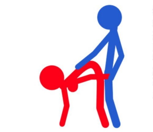 注解:在这个体位中,她的腰部和腿部呈90度夹角。他从后面进入她的身体,她可以让一只手推住他,这提供了更好的控制节奏。如果她不介意的话,他还可以用手指插入哦。