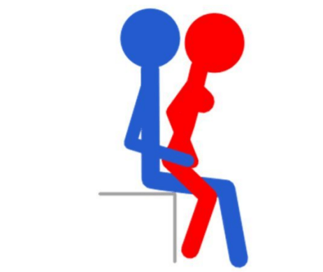 注解:在这个体位,女人坐在男人的身上,她把她的双脚放在地上,前后地移动。她也可以用他们的双手刺激阴蒂。这个体位男人可能会坚持不了太长时间。